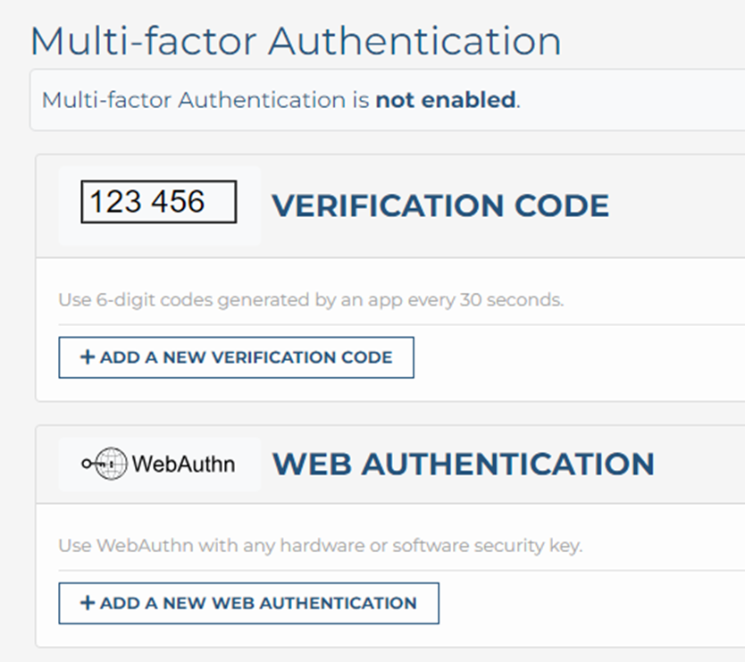 Here you will see two options for MFA: