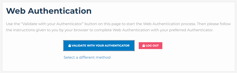 When you login and Web Authentication is your default, you will now see a page asking you to Validate with your Authenticator. If you are using a laptop or PC, open your phone to complete the MFA Authorization by providing your finger print. If you are browsing with your phone you will be asked for your finger print once you click Validate with your authenticator.